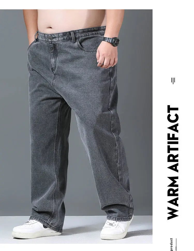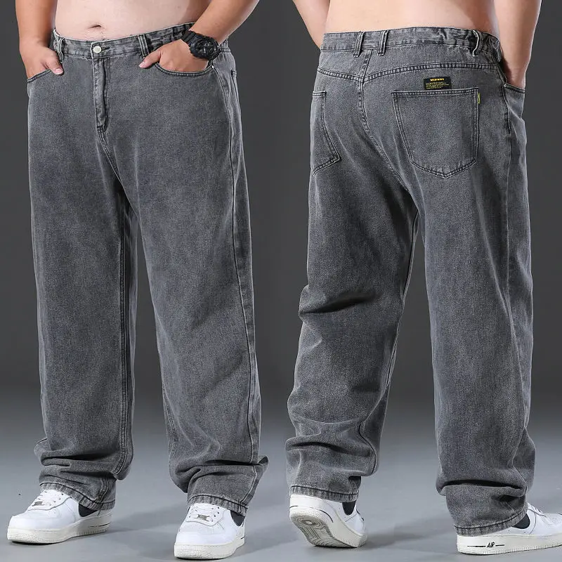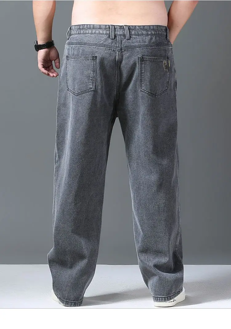 Baggy Jeans Men Casual Pants Wide Leg Classic Work Wear Trousers Gray Denim Pants 2022 New