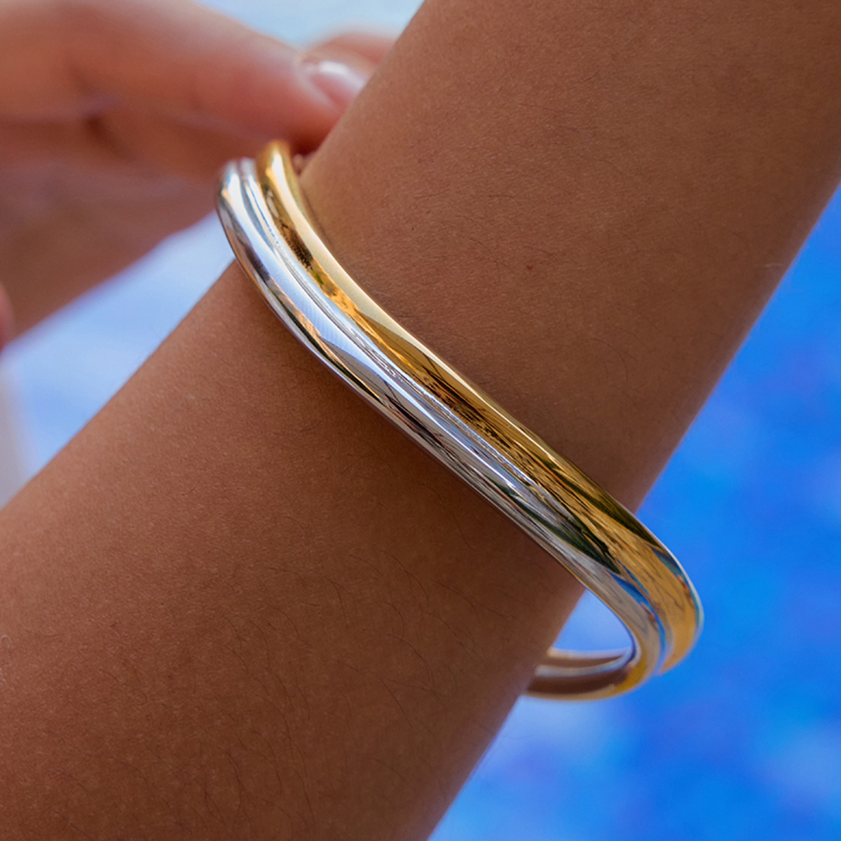 Gold And Silver Two-tone Double-layer Wave Stainless Steel Bracelet