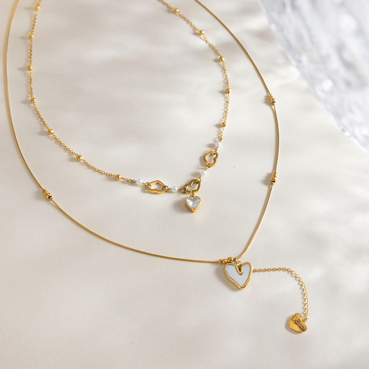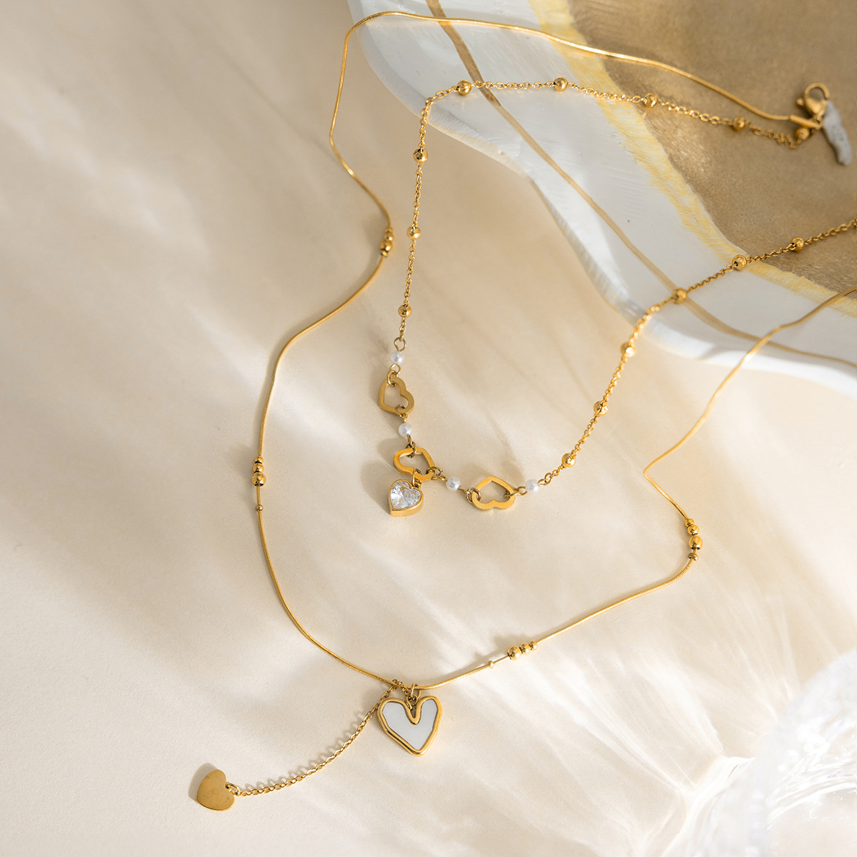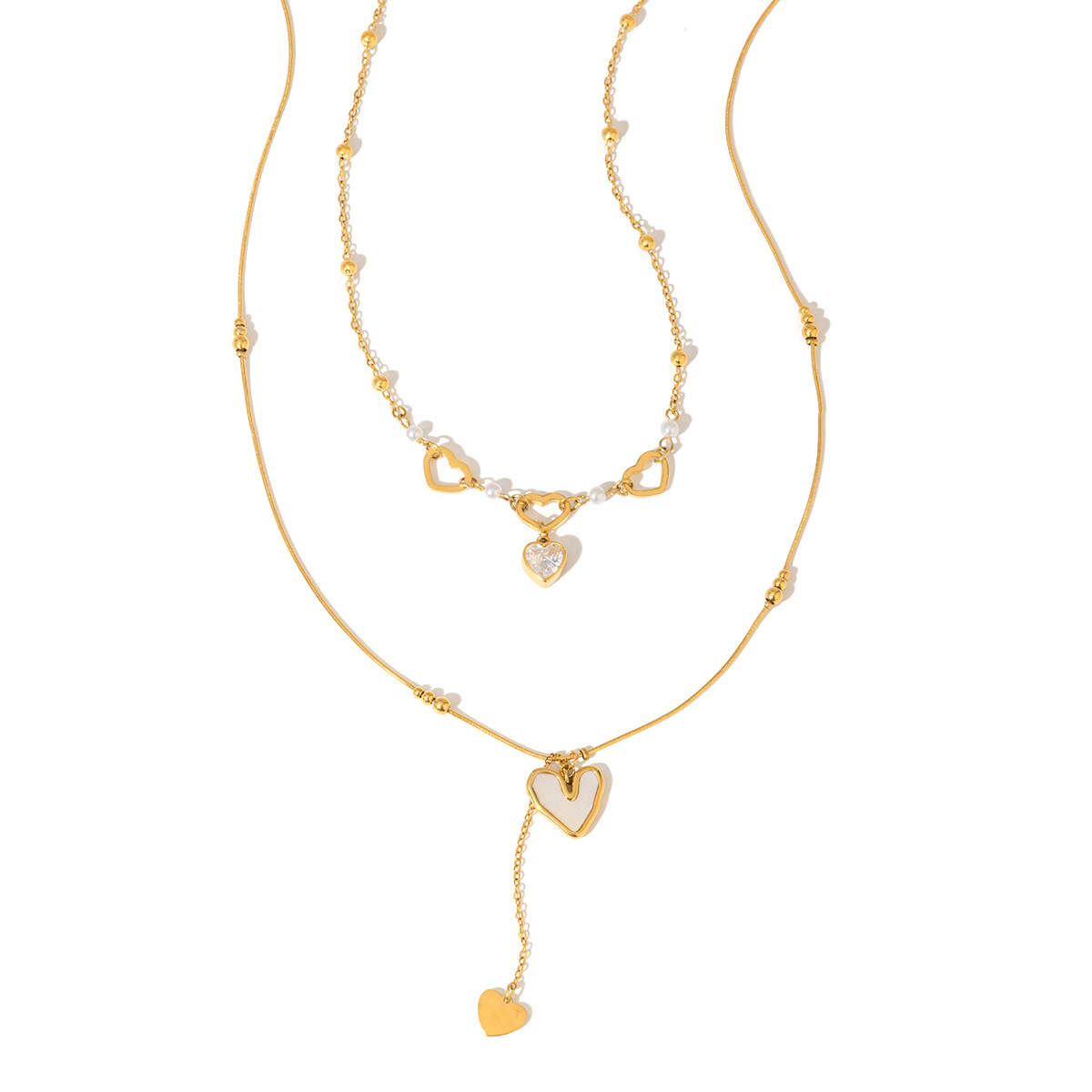 Womens Double-Layer Shell And Zircon Necklace For Layering