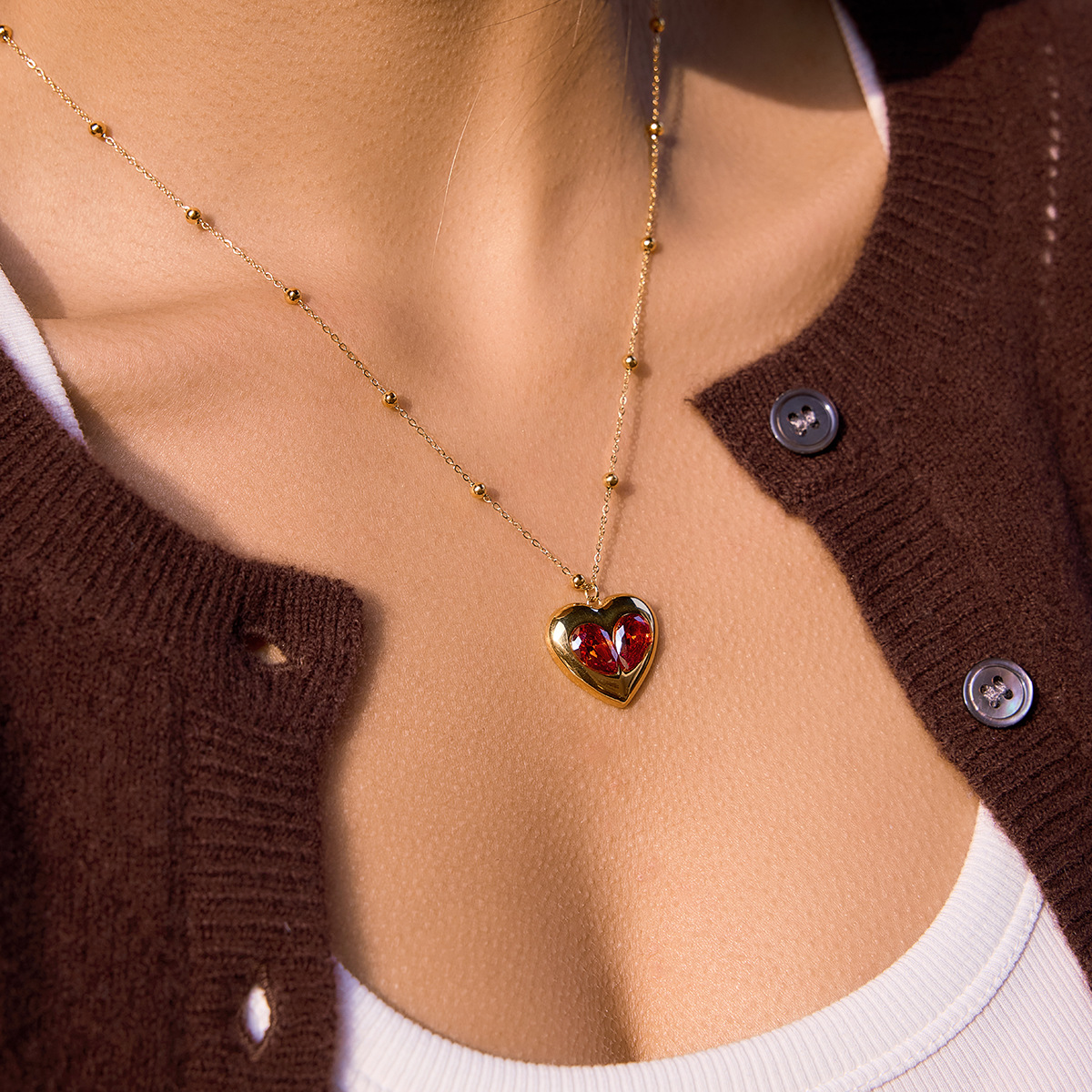 Womens Lightweight Luxury Titanium Steel Necklace With A Heart-shaped Zircon Charm